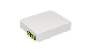 This Wall Outlet Termination Box is used for splicing and termination between indoor fiber optic cable and pigtails with SC or LC duplex type. The termination box is used for wall mounted or desktop applications. Made of the plastic material, is easy to install in home or office. Outlets are designed to fit SC fiber optic cable patch cord adapter, used in work location subsystem.